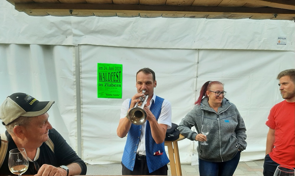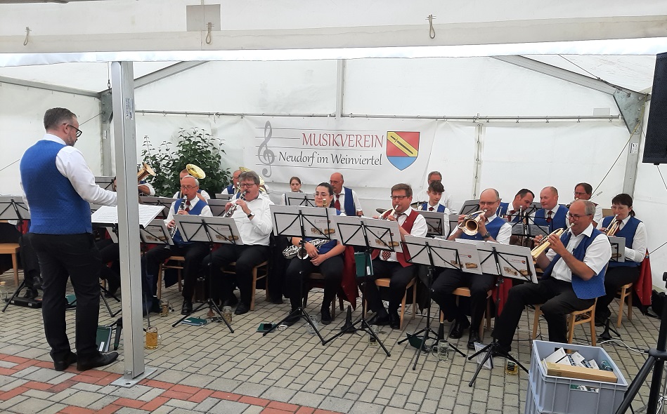 Bei kühlen Bier vom Fass gab es am sonntäglichen Frühschoppen dann auch noch festliche Unterhaltung durch den Musikverein, wobei auch bei einigen das Tanzbein geschwungen wurde.